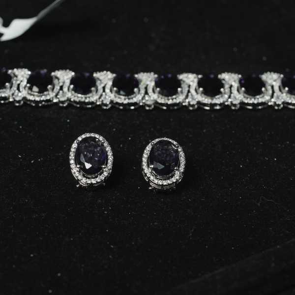 Enhance your modern elegance with this stylish american stone necklace set, featuring sparkling American stones in a sleek silver-tone plated finish. Perfect for parties, evening wear, and special occasions.