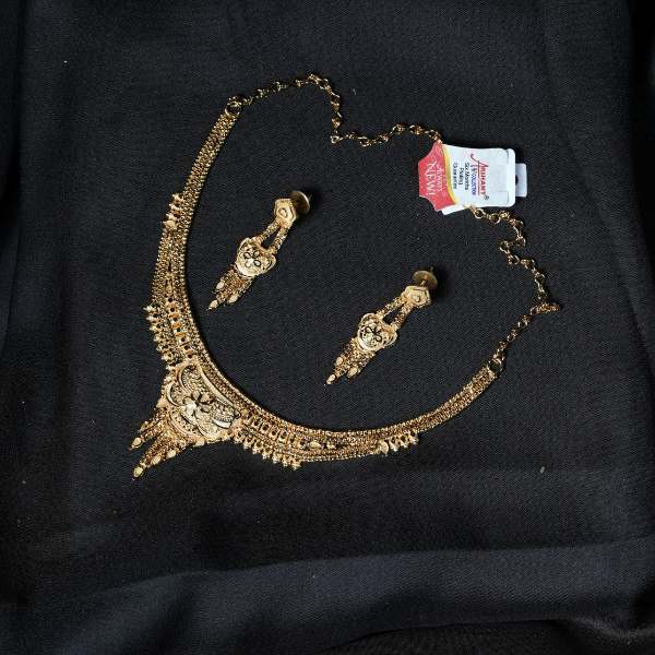 This brass forming gold plated necklace set blends traditional Indian craftsmanship with modern durability. The intricate detailing and rich gold finish create a premium look that pairs effortlessly with sarees, lehengas, and ethnic gowns. Lightweight yet striking, it offers comfortable all-day wear for weddings, festivals, and cultural celebrations. A timeless design that adds grace, confidence, and cultural charm to every occasion—ideal for women who love statement jewelry without the weight of solid gold.