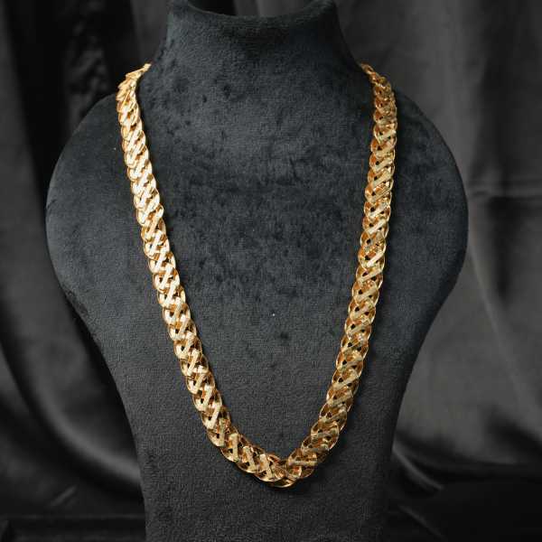 This Cuban Link Chain features a classic tightly interlocked pattern with a premium gold-plated finish that delivers a rich, masculine appeal. Built for durability and everyday comfort, it sits perfectly on the neckline without feeling heavy. Whether worn solo for a statement look or layered with pendants, this chain enhances both modern and traditional styles. Ideal for men who want a bold accessory that reflects confidence, status, and timeless fashion. Suitable for daily wear, gifting, and festive occasions.