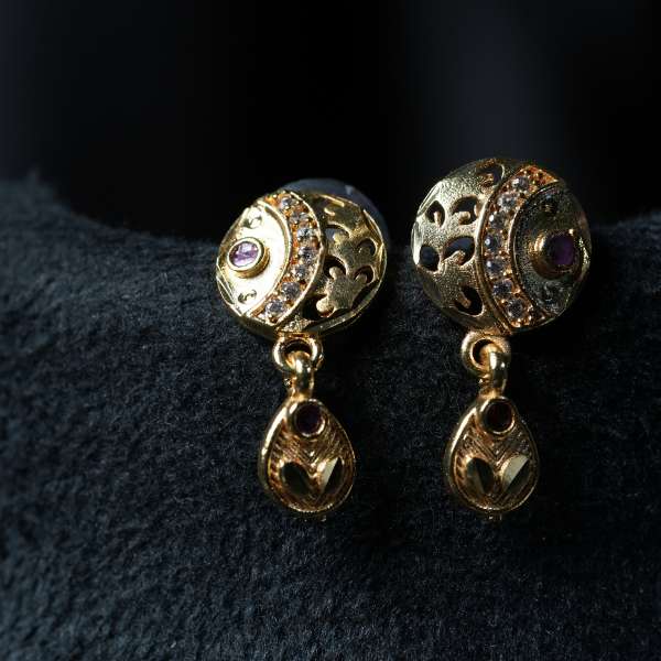 This beautifully crafted AD Pendant Set blends traditional charm with refined elegance. The pendant showcases intricate detailing highlighted with shimmering American Diamond stones, creating a rich and graceful appearance. Subtle stone accents add depth and sophistication, making the design stand out without being overpowering.