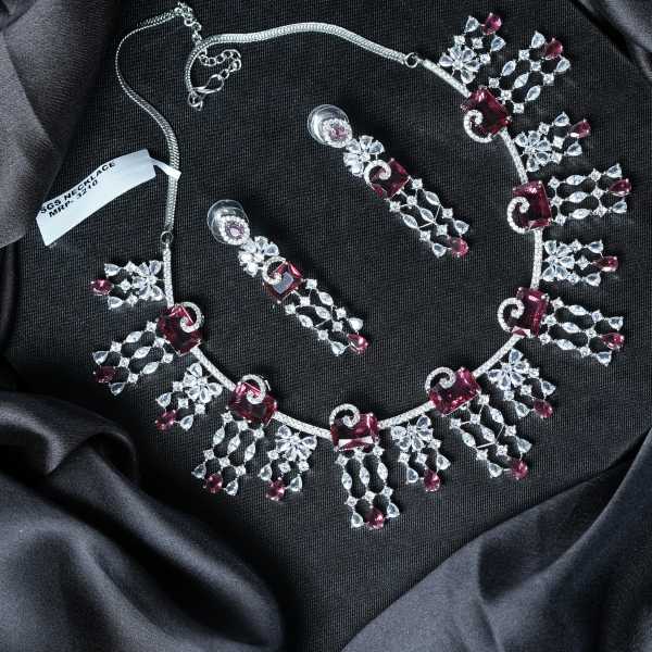 Made from high-quality alloy metal with premium silver tone plating, these necklace sets provide durability, comfort, and long-lasting shine. The deep red ruby hue adds a royal touch, making them ideal for bridal wear, wedding receptions, festive celebrations, and evening parties.