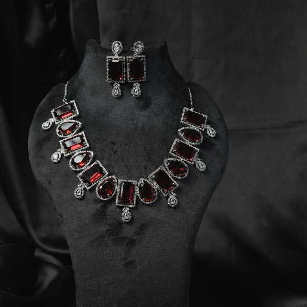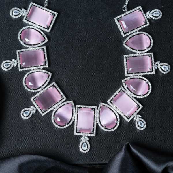 Make a refined style statement with this elegant rectangle stone necklace set, designed with carefully arranged geometric stones in a soft pink hue. Finished in a premium silver-tone metal, the necklace delivers a balanced blend of modern design and timeless charm. The matching earrings enhance the coordinated look, making it ideal for cocktail parties, festive occasions, weddings, and formal evenings. Lightweight, skin-friendly, and versatile, this rectangle stone necklace pairs beautifully with ethnic outfits as well as contemporary dresses. A perfect choice for women who love bold yet graceful jewelry with international appeal.
