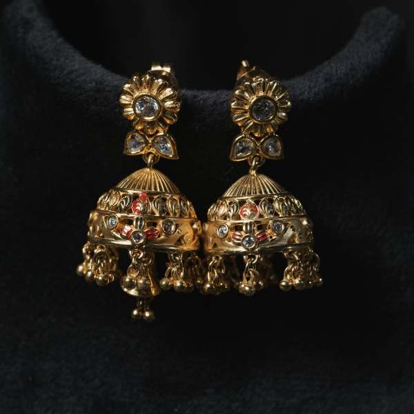 This Jhumka Pendant Necklace Set is inspired by timeless Indian jewellery traditions and designed to add graceful charm to ethnic ensembles. The necklace showcases a finely detailed jhumka-style pendant with intricate patterns and stone accents, paired with matching jhumka earrings for a complete look.