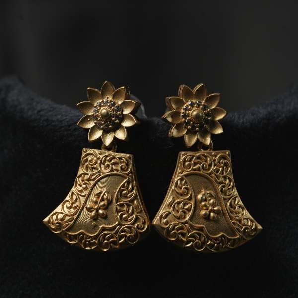 Enhance your ethnic elegance with this beautifully crafted antique design necklace set, inspired by timeless traditional jewellery patterns. The necklace showcases detailed engraved panels with an antique gold finish, creating a rich and heritage-inspired look. The matching earrings mirror the necklace design, completing the set with perfect symmetry and grace.