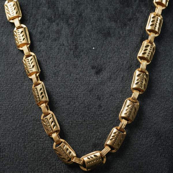 Premium gold chain featuring gold chain carving machine design, crafted with precision-cut engraved links for a rich, elegant, and modern look.