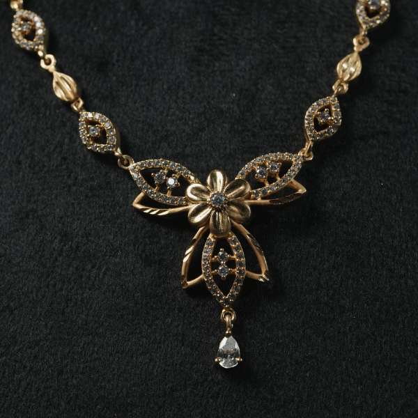 Enhance your style with this beautifully crafted gold crystal necklace set, designed for women who love understated elegance with a touch of shine. The necklace features a delicate gold-tone chain adorned with crystal-studded floral motifs, finished with a charming drop crystal pendant that adds refined glamour.