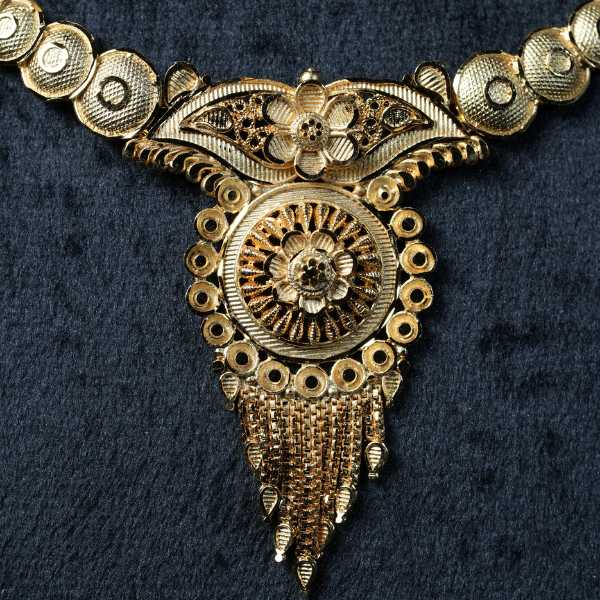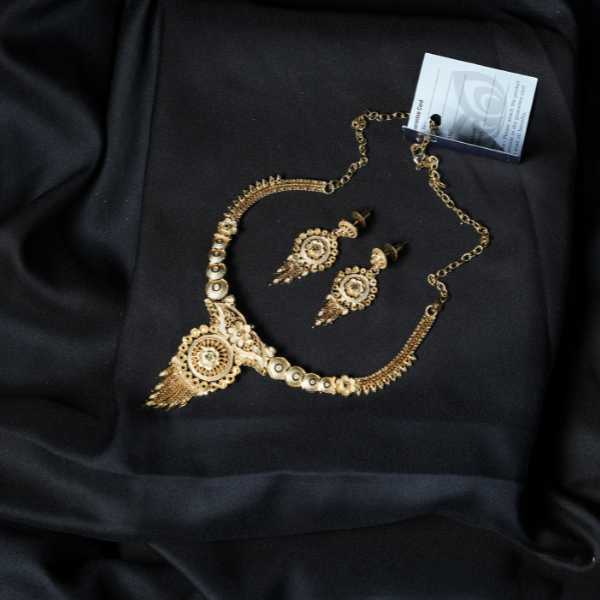 Crafted using high-quality alloy metal and finished with premium gold plating, this necklace set delivers a rich and timeless appearance while remaining lightweight and comfortable for extended wear. Whether you are attending a wedding, festive event, or special occasion, this jewellery set adds sophistication and grace to your look.