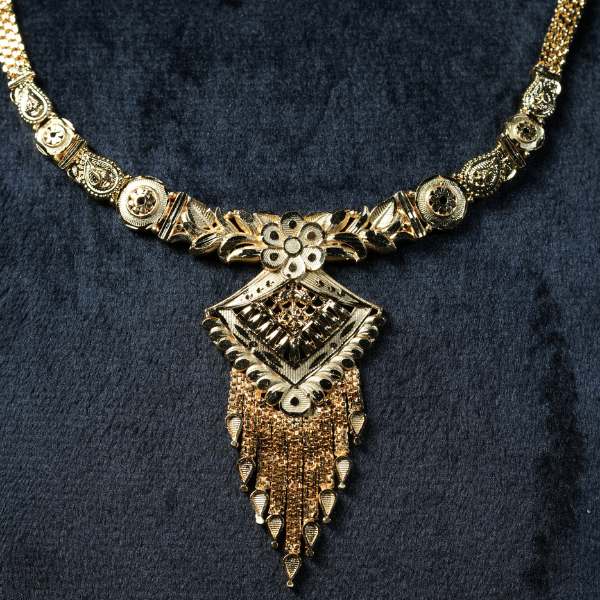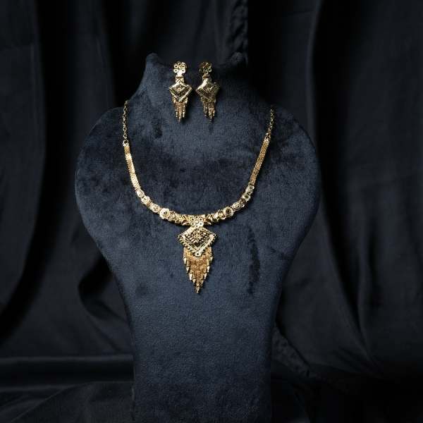 Enhance your jewellery collection with this beautifully crafted gold plated necklace set for women, designed to reflect timeless elegance and modern charm. The necklace showcases intricate detailing with a rich gold finish, complemented by matching earrings that complete the look effortlessly.