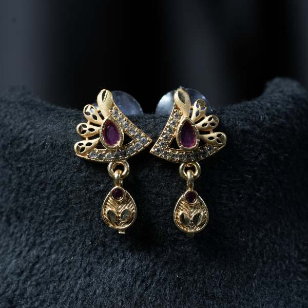 Paired with matching ruby-studded earrings, this necklace set is ideal for festive occasions, family functions, weddings, and elegant daily wear. Its classic design complements sarees, ethnic suits, and fusion outfits, making it a versatile jewellery essential. Designed for women who appreciate understated luxury, this pendant necklace adds warmth, tradition, and sophistication to every look.