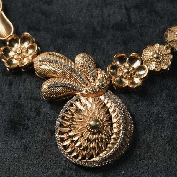 Ideal for weddings, festive celebrations, poojas, cultural events, and traditional gatherings, this golden colour necklace set pairs beautifully with sarees, lehengas, silk outfits, and ethnic dresses. A must-have accessory for women who appreciate classic design blended with modern craftsmanship.