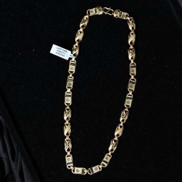 A uniquely styled pencil lead carving chain featuring artistic engraved links and a rich gold finish, perfect for women who love statement jewellery with a modern edge.