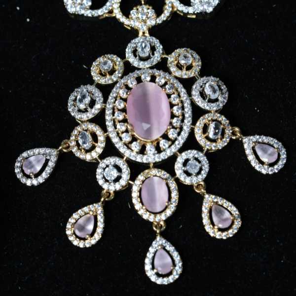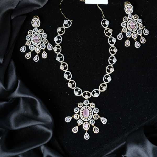 The silver-tone plated base beautifully complements the brilliance of the stones, making it suitable for both everyday wear and special occasions such as parties, weddings, and festive events. The matching earrings complete the look, creating a balanced and refined jewellery ensemble.